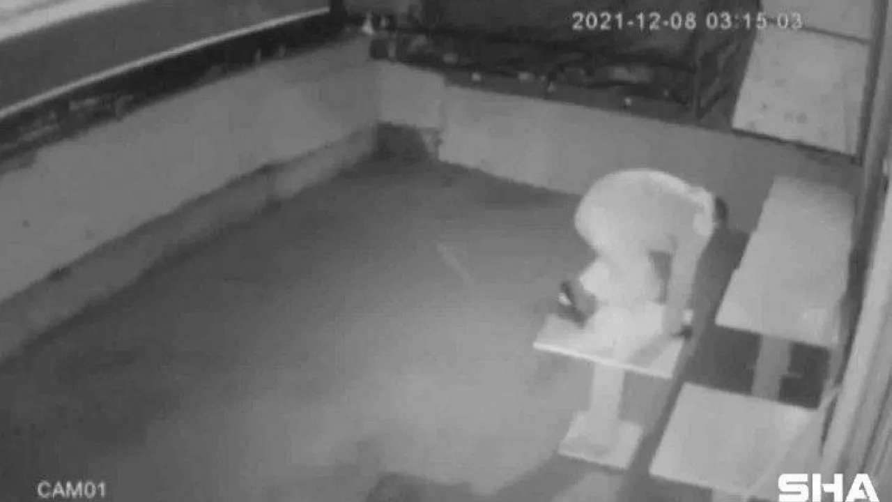 Bir başka olayda ise, sokak arasında bulunan park halindeki aracı el feneriyle kontrol ederken ıslanmamak için şemsiye açan zanlı da kameralara yansıdı.