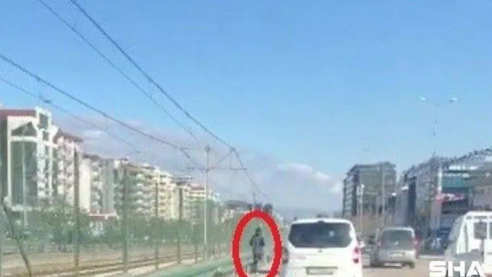 Bursa’da ana yolda araçlarla birlikte sol şeritten koşan bir kişi sürücülere tehlikeli anlar yaşattı. O anlar bir sürücünün cep telefonu kamerasına anbean yansıdı.