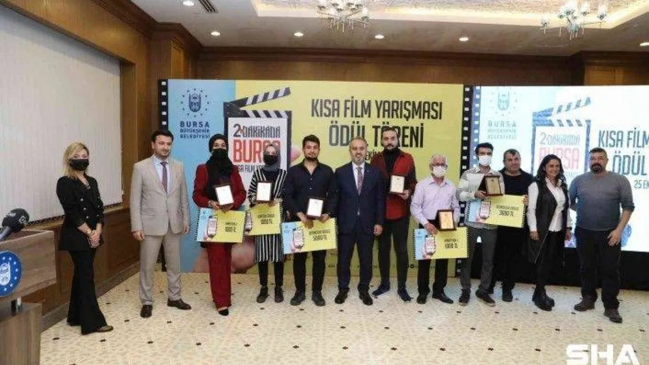 Bursa Büyükşehir Belediyesi tarafından düzenlenen '2 Dakikada Bursa Kısa Film Yarışması'nın kazananları belirlendi. Dereceye giren filmleri yarışmacılarla birlikte izleyen Başkan Aktaş, ortaya çıkan eserlerin şehrin tanıtım çalışmalarında kullanılabileceğini söyledi.