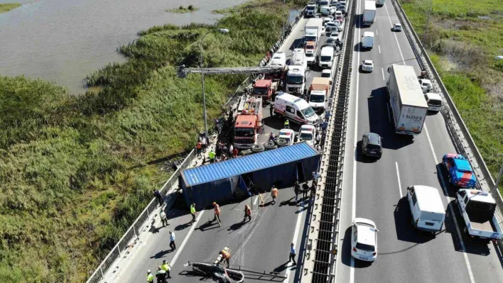 TEM Otoyolu Büyükçekmece mevkiinde kontrolden çıkan tır devrildi. Viyadük üzerinde yaşanan kazada kopan tırın kupası sürücü ile birlikte göl havzasına uçtu. İtfaiye ekiplerinin sürücüyü halat bağlayarak kurtardı.