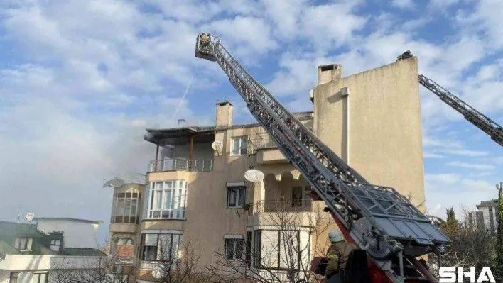 Büyükçekmece'de 4 katlı bir binanın çatı katında şömine nedeniyle yangın çıktı. Çıkan yangının dumanlarını gören kadın köpeğiyle kendisini son anda dışarıya attı.