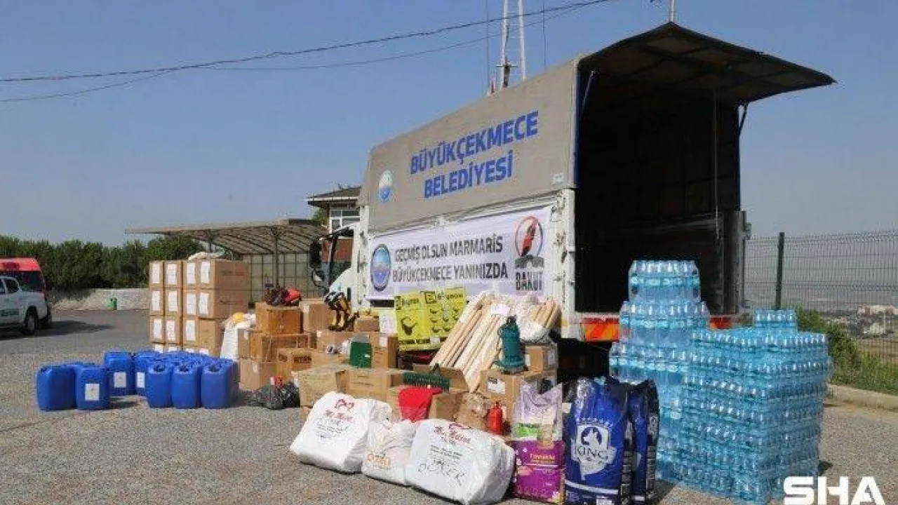 Büyükçekmece Belediyesi, yangın bölgelerinde görev yapan ekipler, gönüllüler, yangından etkilenen vatandaş ve hayvanlar için ihtiyaç doğrultusunda hazırlanan malzemeler yola çıktı.