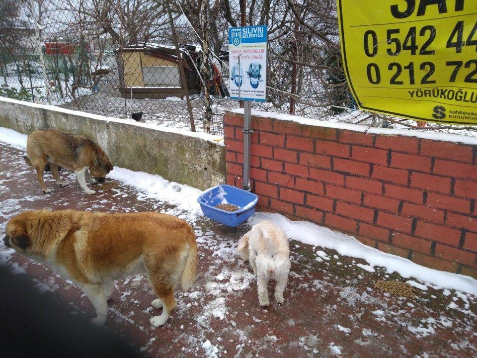 Silivri Belediyesi ekipleri ilçe genelinde etkisini gösteren soğuk hava koşullarında sokak hayvanlarını unutmadı.