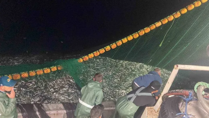 Çanakkale Boğazı'nda 30 ton sardalya yakaladı