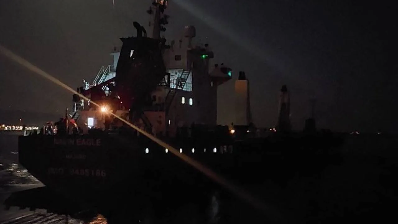 Gemi, kılavuz kaptan ve römorkör refakatinde Karanlık Liman Demir Bölgesi’ne götürülerek demirletildi.