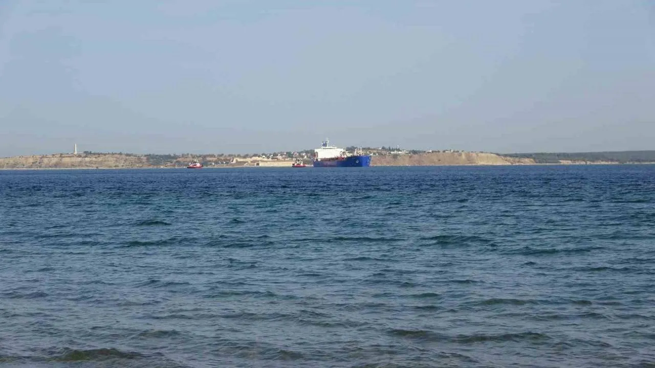 Çanakkale Boğazı'nda makine arızası giderilen tanker Bozcaada demir sahasına götürüldü