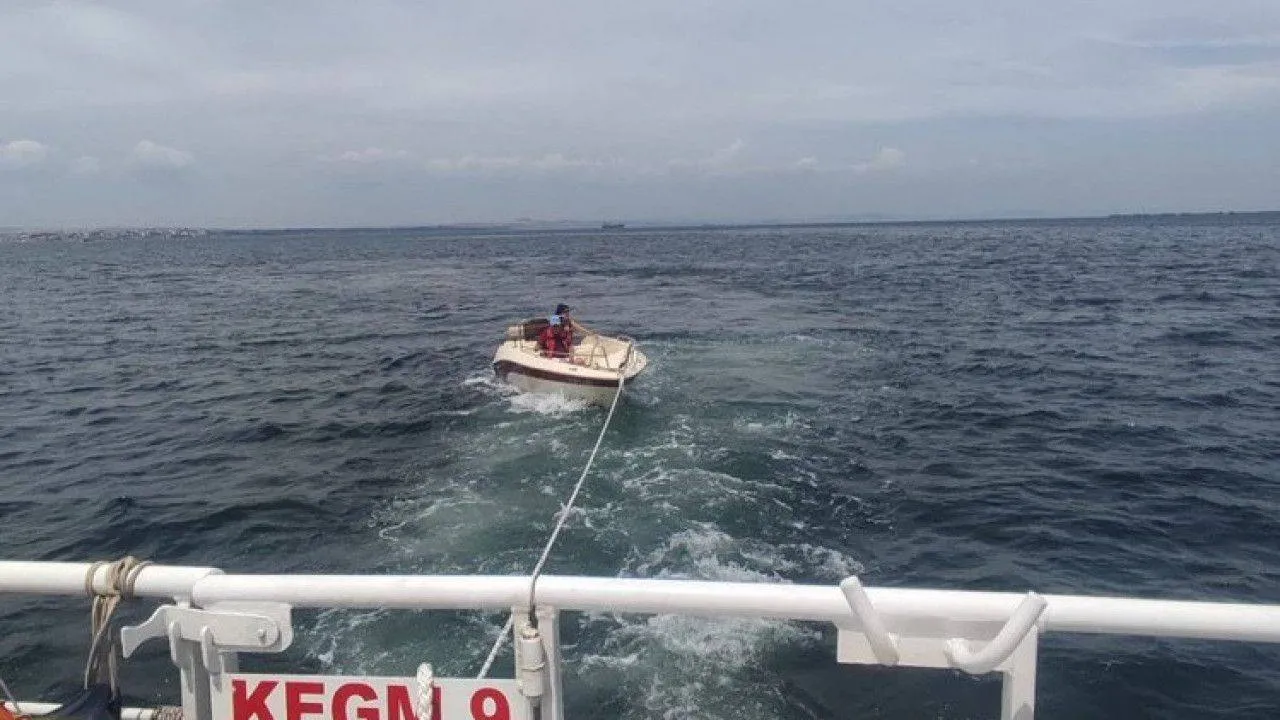 Çanakkale Boğazı'nda Çardak önlerinde içinde 2 kişinin bulunduğu sürüklenen tekne, Kıyı Emniyeti Genel Müdürlüğüne ait bot ile yedeklenerek Lapseki Balıkçı Barınağı'na yanaştırıldı.