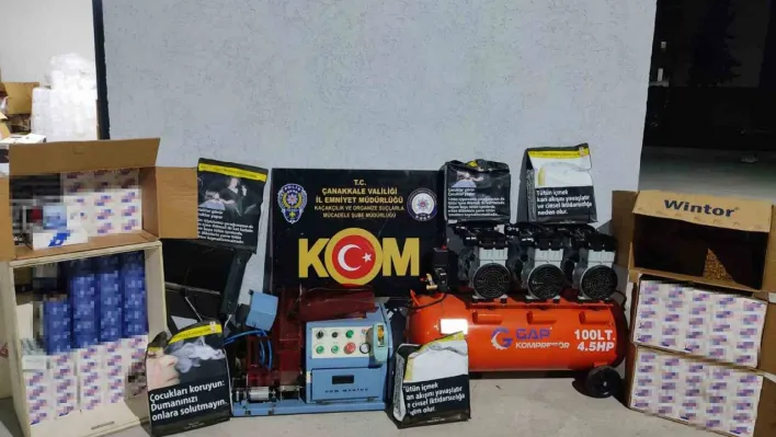 Çanakkale İl Emniyet Müdürlüğü Kaçakçılık ve Organize Suçlarla Mücadele (KOM) Şube Müdürlüğüne bağlı Kaçakçılık Suçları Büro Amirliği ekipleri, doldurma sigara imalathanelerine yönelik çalışmalarda bazı şahısların ikamet olarak kullandıkları depoya baskın yaptı. Baskında adreste yapılan aramada 1 adet sigara sarma makinası, 1 adet hava kompresörü, 36 bin 200 adet doldurulmuş sigara ele geçirildi. Şüpheliler Ö.D. ve M.K., 5607 SKM suçundan adli işlem yapılmasının ardından serbest bırakıldı.