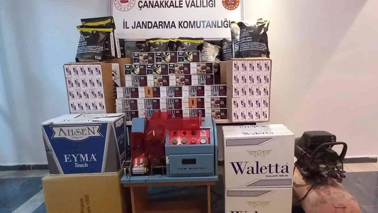 Çanakkale İl Jandarma Komutanlığı ekipleri, kaçakçılıkla mücadele çerçevesinde merkeze bağlı Kurşunlu köyünde düzenledikleri operasyonda, piyasa değeri 90 bin TL olan 29 kilogram kıyılmış tütün, 11 bin dolu makaron, 56 bin 500 boş makaron, otomatik sigara sarma makinesi ele geçirdi.