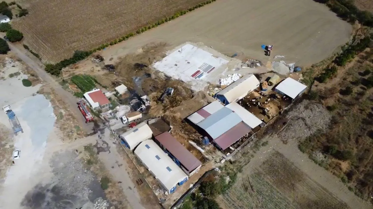 Çanakkale'nin Gelibolu ilçesinde bir hayvan damında bakım onarım çalışması esnasında çıkan yangında iki küçükbaş hayvan telef olurken, çok sayıda saman balyası yandı. Hayvan damında ekiplerin yaptığı çalışmalar dron ile görüntülendi.