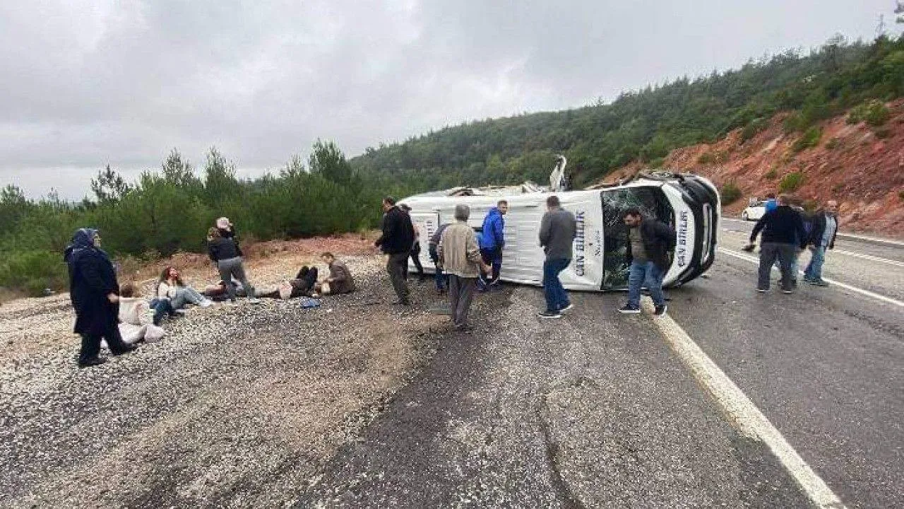 Çanakkale-Çan karayolunda yolcu minibüsü devrildi. Kaza sonrası can pazarı yaşanırken, o anlar cep telefonu kamerasına yansıdı.