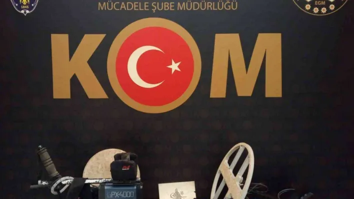 Çanakkale İl Emniyet Müdürlüğü Kaçakçılık ve Organize Suçlarla Mücadele (KOM) Şube Müdürlüğü ekiplerince, kaçakçılıkla mücadele çerçevesinde E.Ç’nin adresinde yapılan aramada, üstünde figürler bulunan 42 sikke, mühür benzeri 7 metal obje, gri renkli yüzük, üstünde metal objeler bulunan üstü paslanmış zincir uçlu düdük, üstünde ay yıldız bulunan 2 metal obje, farklı büyüklükte 16 metal obje, ucu sivri 2 metal obje, 3 saydam renkli obje, 2 farklı çap ve büyüklükte paslanmış eski fişek, üstünde tuğra şekli olan Arap harfleri ile yazılmış kağıt evrak, 2 sayfa elle yazılmış kroki, büyük beyaz kağıda elle yazılmış kroki, 3 ölçekli topoğrafik harita benzeri kroki, metal arama detektörü ele geçirildi.