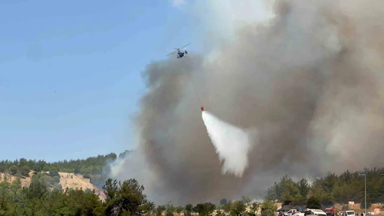 Çanakkale’de çıkan orman yangınını kontrol altına almak için Orman Bölge Müdürlüğü ekipleri havadan ve karadan müdahale ederken, Çanakkale Boğazı trafiğe tek yönlü kapatıldı.