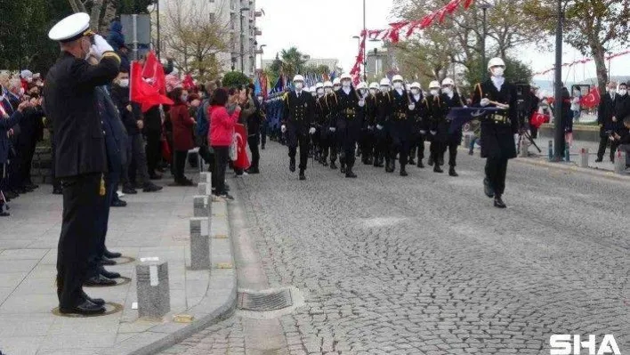 Tören, saat 10.30’da kordon boyundaki Kayserili Ahmetpaşa Caddesi’nde saat 10.30’da saygı duruşu ve İstiklal Marşı’nın okunmasıyla başladı. Daha sonra Cumhurbaşkanı Recep Tayyip Erdoğan’ın kutlama mesajı okundu.
