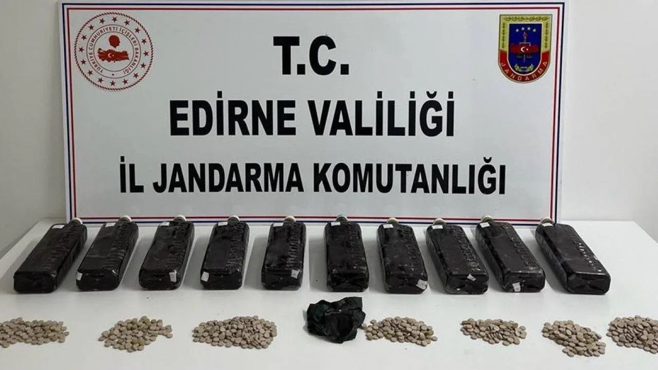Edirne İl Jandarma Komutanlığı ekiplerince bir şahsın çantasında 13 kilogram afyon sakızı ile 967 adet uyuşturucu hap ele geçirildi. Gözaltına alınan şahıs sevk edildiği mahkemece tutuklandı.