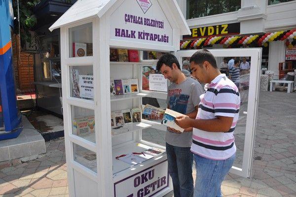 Çatalca Cumhuriyet Meydanı’nda Çatalca Belediyesi tarafından Halk Kitaplığı oluşturuldu. En büyük paylaşımın bilgi paylaşımı olduğu düşüncesiyle hayata geçirilen projenin kontrolü tamamıyla vatandaşlarda olacak. Buraya evinde, iş yerinde kenarda köşede kalmış kitaplarını bağışlayacak olan vatandaşlar, bu kitapları başkasıyla paylaşmış olacak ve okuma alışkanlığının artmasını sağlamak adına önemli bir görev üstlenmiş olacaklar. Çatalca Belediyesi Halk Kitaplığından faydalanmak isteyen vatandaşlar, buradan beğendiği kitabı alabilecekler. 24 saat açık olan kitaplığa okunan kitaplar ise daha sonra tekrar geri getirilecek. Başında hiçbir görevlinin bulunmadığı kitaplıkta kontrol ise tamamen vatandaşa bırakıldı.