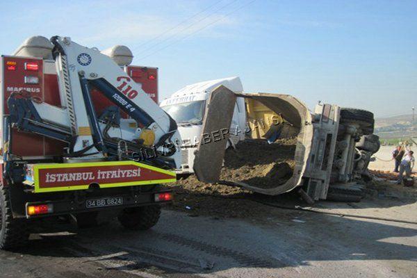 Çatalca Muratbey Mahallesi Fabrikalar Caddesi üzeri 3 Tır'ın çarpışması sonucu 1 kişi öldü 1'i ağır 2 kişi yaralandı.