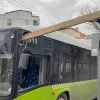 Çatıdan kopan kereste seyir halindeki otobüse saplandı