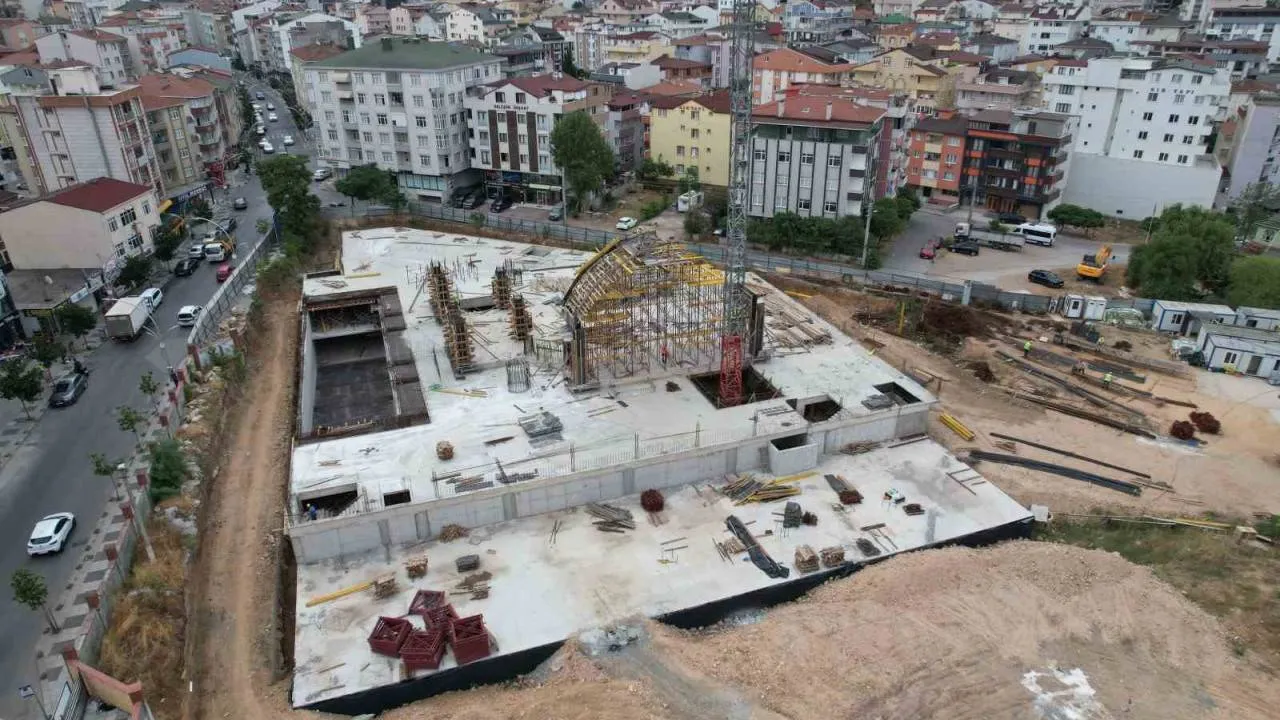Çayırova'nın yeni cazibe merkezi olacak kent meydanında cami inşaatı hızla yükseliyor.