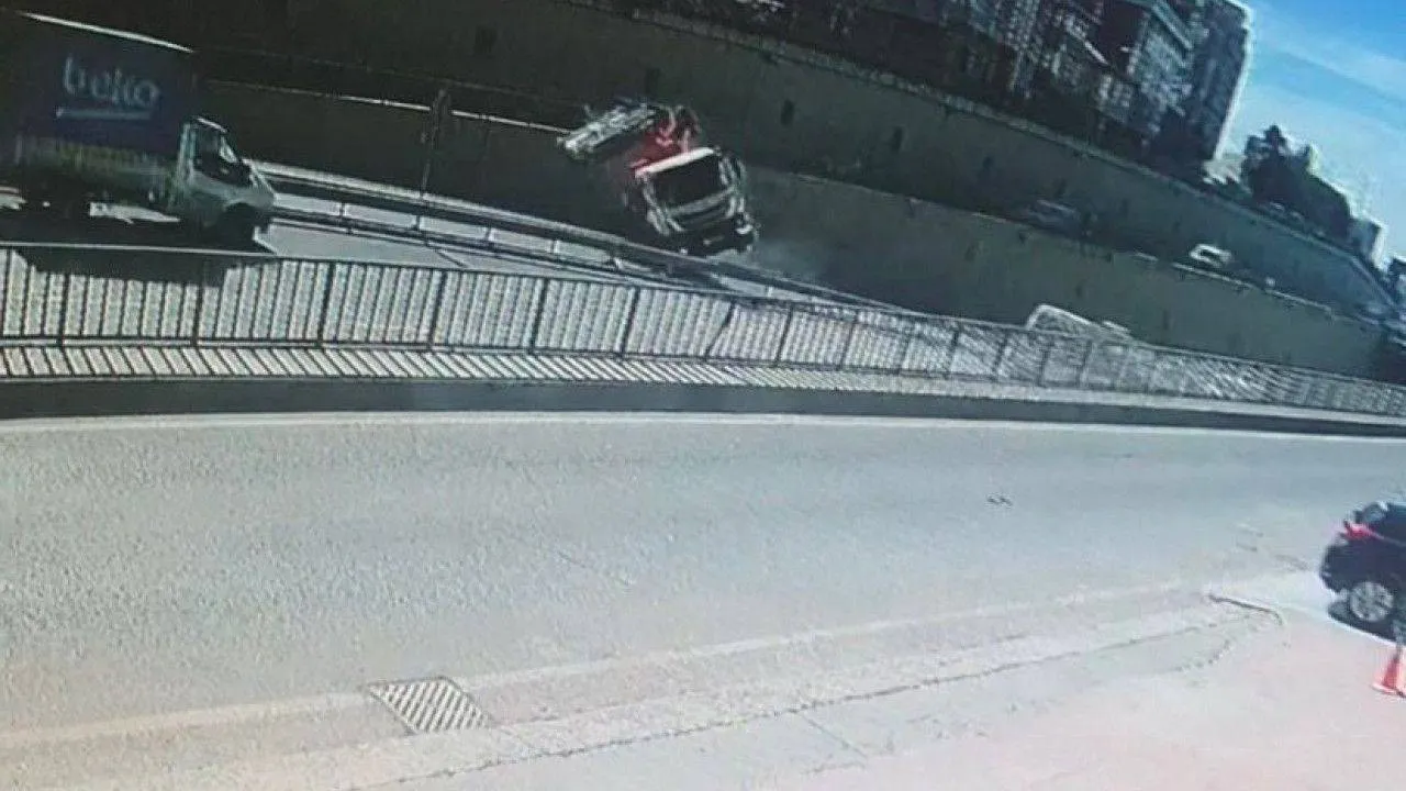 Çekmeköy-Şile Otoyolu tünelinde çöp kamyonu duvara çarparak devrildi. Araç içerisinde sıkışan kamyon şoförü ile yanındaki kişi itfaiye tarafından kurtarılırken, kaza anı güvenlik kamerasına yansıdı.