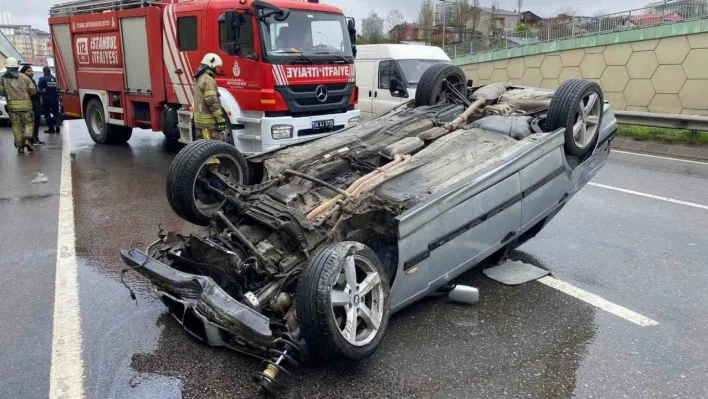 Çekmeköy'de kontrolden çıkan otomobil takla attı: 1 yaralı