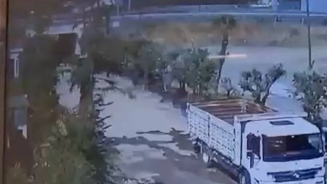 Tırın yoldan çıkarak devrilme anı ise güvenlik kamerasına yansıdı.