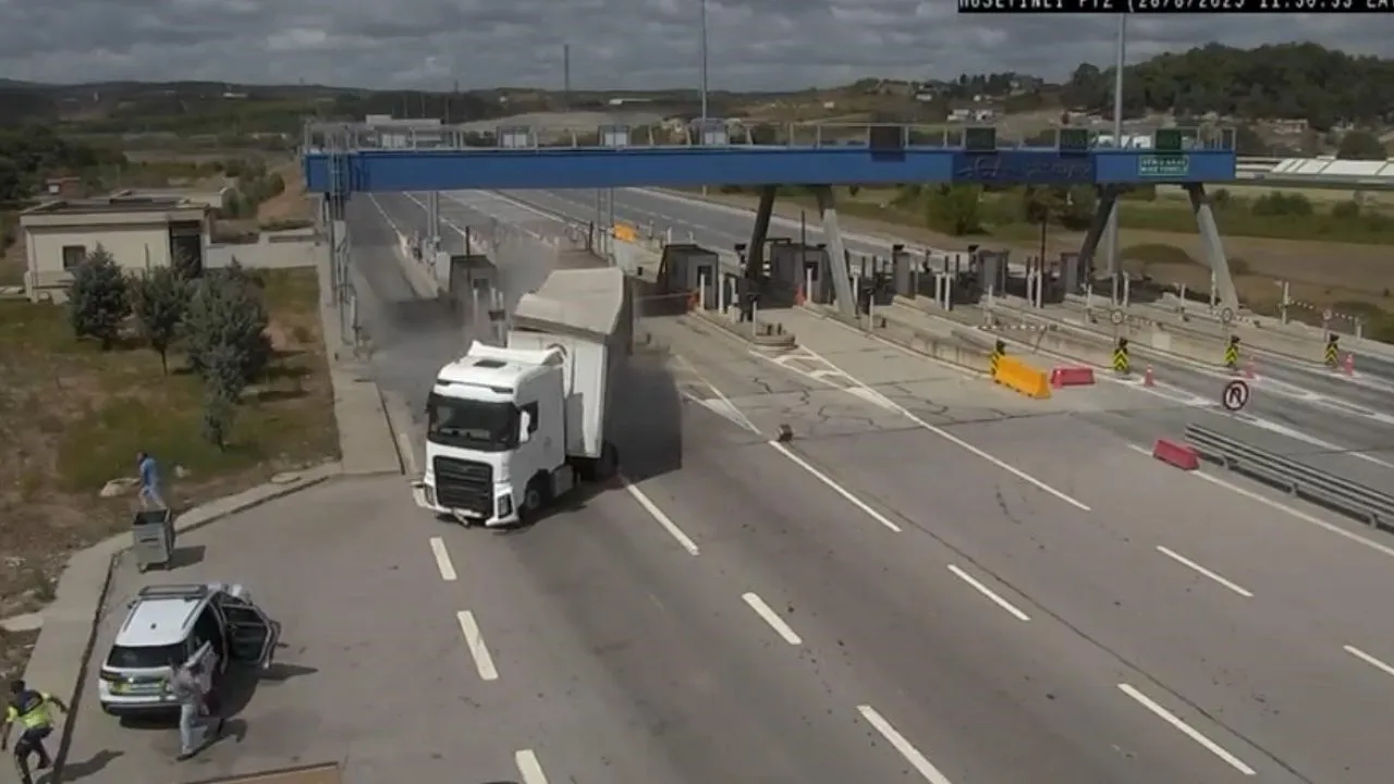 İstanbul'un Çekmeköy ilçesinde, gişelerde meydana gelen trafik kazası güvenlik kamerasına saniye saniye yansıdı. Kontrolden çıkan tırın hızla gişelere girdiği, ardından park halindeki jandarma aracına çarptığı anlar kameraya yansıdı.