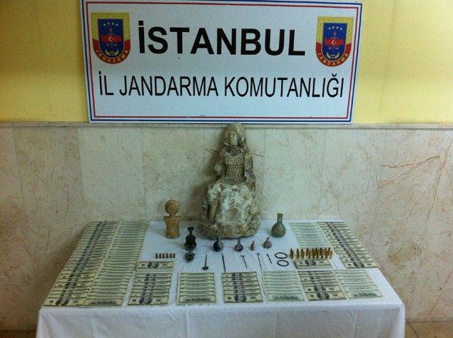 İstanbul İl Jandarma Komutanlığı, Büyükçekmece Celaliye Mahallesinde iki şahsın bir otomobilde yanlarında tarihi eser bulundurdukları, Bahçelievler Çobançeşme Mahallesinde bulunan Kuyumcukent’de bir dükkanda tarihi eser bulundurulduğu bilgisi üzerine harekete geçti. Büyükçekmece’de araç içerisinde, Kuyumcukent’de dükkanda İstanbul İl Jandarma Komutanlığı ekipleri tarafından baskın düzenlendi. Yapılan aramalarda, araç içerisinde yapılan aramada siyah deri bir çanta içerisinde 162 adet gümüş sikke, dükkanda yapılan aramada 2 adet heykel, 5 adet cam süs eşyası, 4 adet metal eşya, 5 adet metal çubuk, 2 adet halka şeklinde obje, 1 adet lamba şeklinde metal obje, 300 adet sahte olduğu değerlendirilen 100 Amerikan Doları, 18 adet 3.57 mm. magnum tabanca fişeği ile 6 adet 7.65 mm. tabanca fişeği ele geçirildi. Operasyonda, her iki olayla ilgili olarak 3 şahıs gözaltına alındı.