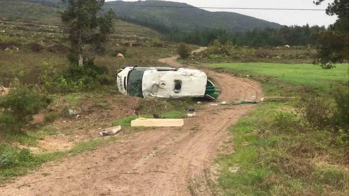 Bilecik'te cenaze almaya giden cenaze aracının devrilmesi sonucu sürücü yaralandı.