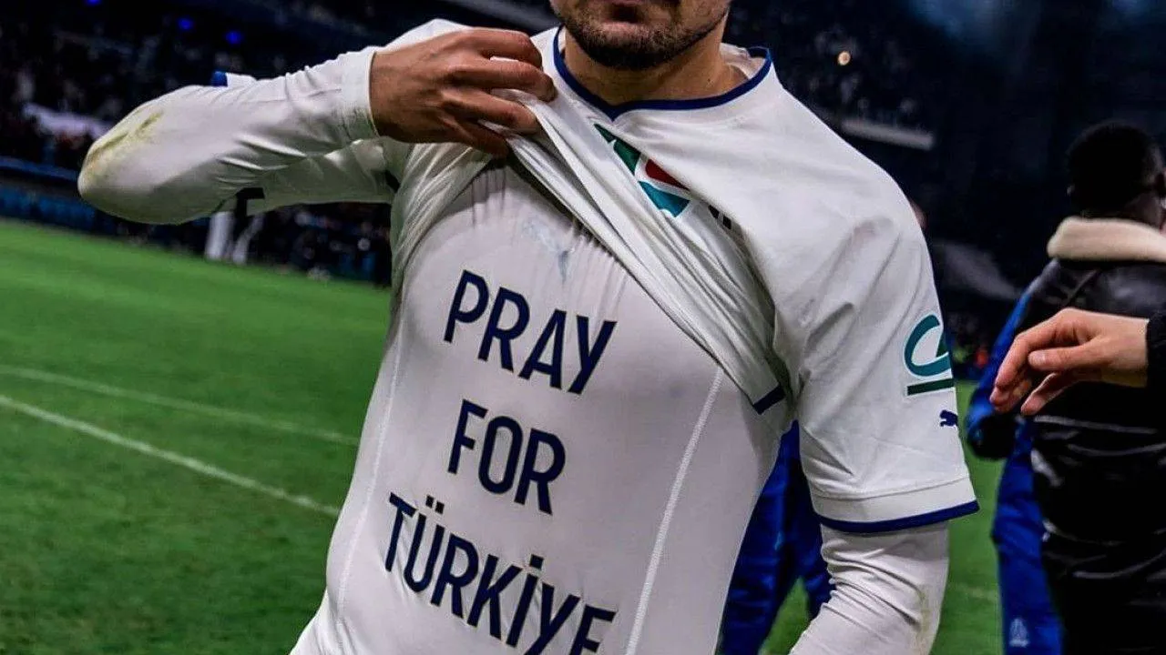 Fransa ekibi Marsilya'da forma giyen milli futbolcu Cengiz Ünder, Paris Saint Germain maçında depremzedelere destek olmak amacıyla, formasının altındaki tişörte 'Türkiye için dua edin' yazısını yazdı.