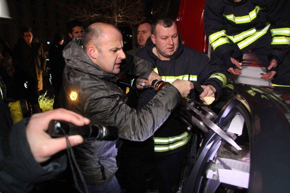 Otomobilde sıkışan sürücü Peyami Çiçek, uzun uğraşlar sonucu sıkıştığı yerden çıkarıldıktan sonra bir özel hastanede tedavi altına alındı.