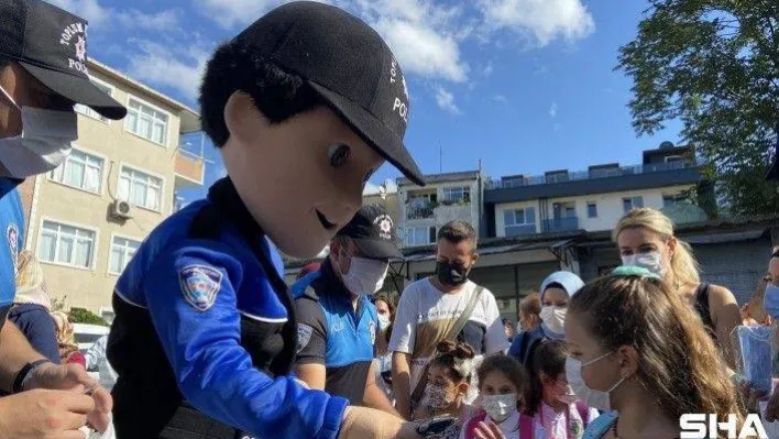 İstanbul Emniyeti Toplum Destekli Polislik Şube Müdürlüğü ekipleri, Eyüpsultan'da uyum haftası kapsamında yüz yüze eğitime başlayan anaokulu ve ilkokul birinci sınıf öğrencileriyle buluştu. Çocukların ilk gün heyecanına ortak olan maskot polis 'Cesur' onlara hediyeler verdi.