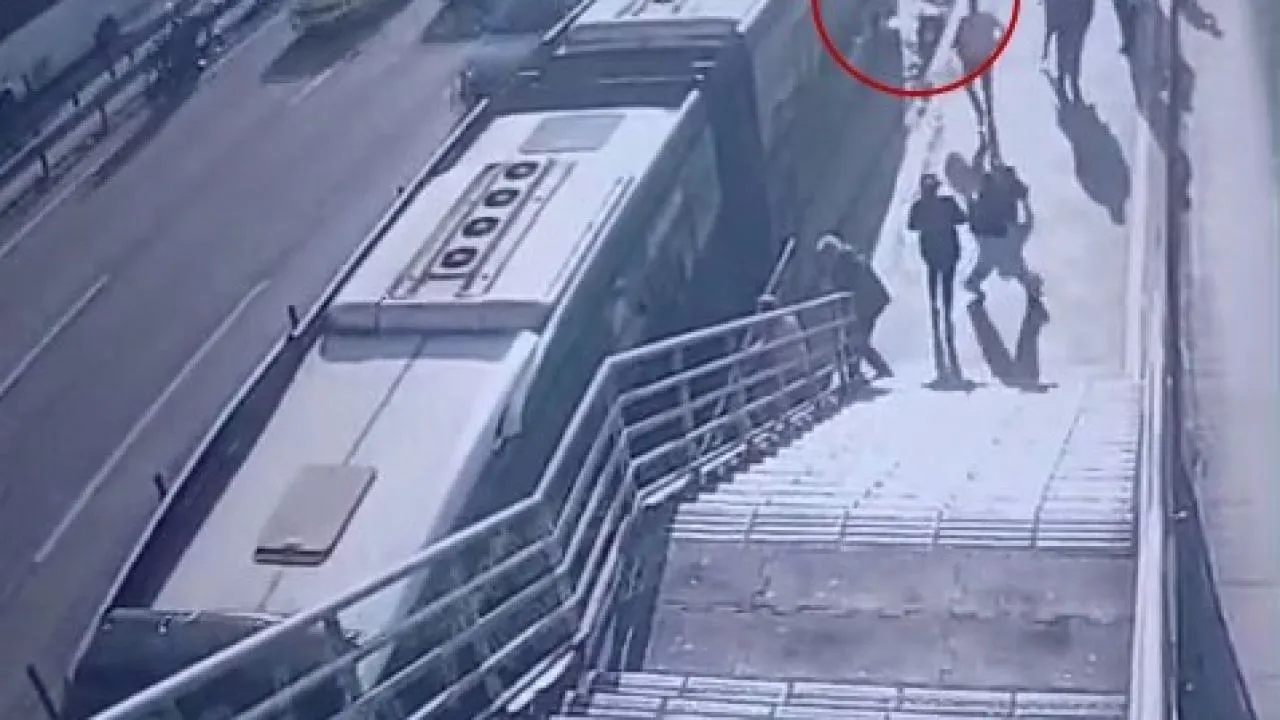 Yaşanan kaza anı çevredeki güvenlik kamerasına yansıdı. Görüntüde, Hüseyin C.’nin tekerlekli sandalyesiyle metrobüs yoluna düştüğü ardından metrobüsün çarptığı anlar yer aldı.