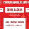 "Adalet Politika Kurulu Başkanı Şule Özsoy Boyunsuz, Aile ve Sosyal Hizmetler Politika Kurulu Başkanı Aylin Nazlıaka, Çalışma ve Sosyal Güvenlik Politika Kurulu Başkanı Gamze Taşcıer, Çevre, Şehircilik ve İklim Değişikliği Politika Kurulu Başkanı Seyit Torun, Dışişleri Politika Kurulu Başkanı Ömer Kaya Türkmen, Enerji ve Tabii Kaynaklar Politika Kurulu Başkanı Ümit Özlale, Gençlik ve Spor Politika Kurulu Başkanı Sevgi Kılıç, Hazine ve Maliye Politika Kurulu Başkanı Kerim Rota, İçişleri Politika Kurulu Başkanı Murat Bakan, Kültür ve Turizm Politika Kurulu Başkanı Seda Kaya Ösen, Millî Eğitim Politika Kurulu Başkanı Suat Özçağdaş, Millî Savunma Politika Kurulu Başkanı Atilla Kezek, Sağlık Politika Kurulu Başkanı Kayıhan Pala, Sanayi ve Teknoloji Politika Kurulu Başkanı Yalçın Karatepe, Tarım ve Orman Politika Kurulu Başkanı Sencer Solakoğlu, Ticaret Politika Kurulu Başkanı Emre Kartaloğlu, Ulaştırma ve Altyapı Politika Kurulu Başkanı Ayşe Sibel Yanıkömeroğlu, Cumhurbaşkanlığı’na Bağlı Kuruluşlar Politika Başkanı Barış Övgün."