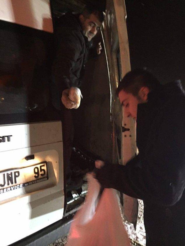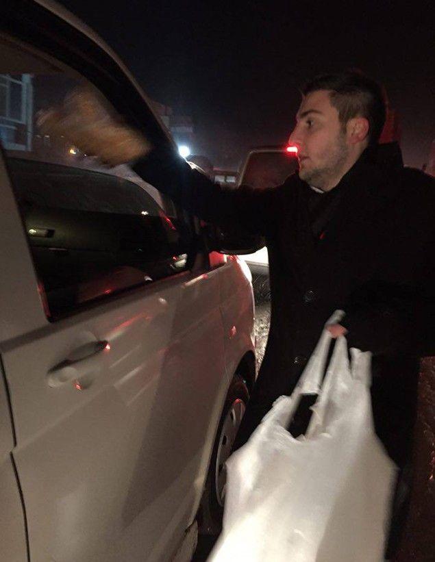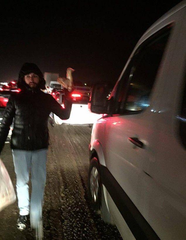Araçlarda mahsur kalan vatandaşları tek tek dolaşan Gençler, mahsur kalan vatandaşlara meyve suyu ve sandviç ikram ederken aynı zamanda da yeni yıllarını kutladı.