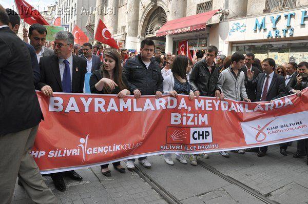 CHP Silivri İlçe Örgütü, Silivri Belediye Başkanı Özcan Işıklar ile birlikte Taksim'de düzenlenen 19 Mayıs yürüyüşüne katılarak, AKP'nin kutlamalara getirdiği yasakları protesto etti.