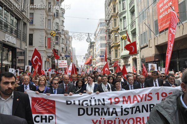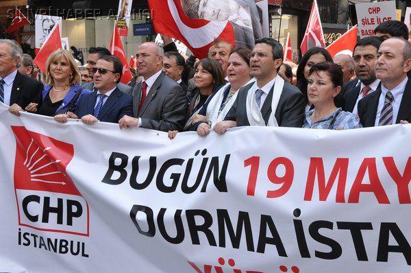 Cumhuriyet Halk Partisi İstanbul İl Yönetimi, 19 Mayıs Atatürk’ü Anma Gençlik ve Spor Bayramı’nın unutturulmaya çalışılmasına tepki göstererek Taksim’de ilçe örgütlerinin de yoğun katılımıyla bir yürüyüş düzenleyerek, Atatürk Anıtı’na çelenk koydu. CHP Silivri İlçe Başkanı Mümin Tuğlu, Silivri Belediye Başkanı Özcan Işıklar, CHP Silivri İlçe Yönetimi, Kadın ve Gençlik Kolları ile binlerce kişinin katıldığı yürüyüşe; CHP Genel Sekreteri Bihlun Tamaylıgil, CHP Grup Başkanvekili Mehmet Akif Hamzaçebi, CHP İstanbul İl Başkanı Oğuz Kaan Salıcı, İstanbul Milletvekilleri Mahmut Tanal, Ali Özgündüz, Celal Dinçer, Haluk Eyidoğan, İhsan Özkes, PM Üyesi Ayşe Aytaç Yılmaz, Belediye Başkanları ve İlçe Başkanları katıldı.