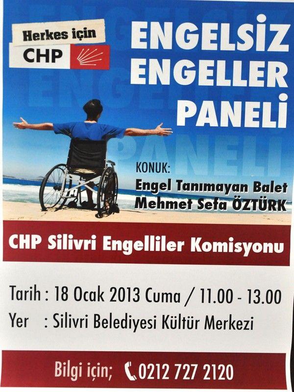 CHP Silivri İlçe Başkanlığı Engelliler Komisyonu, 18 Ocak 2013 Cuma günü gerçekleşecek olan 'Engelsiz Engeller' konulu panel hazırlıklarını sürdürüyor. Panelin konuğu engel tanımayan Balet Memet Sefa Öztürk olacak