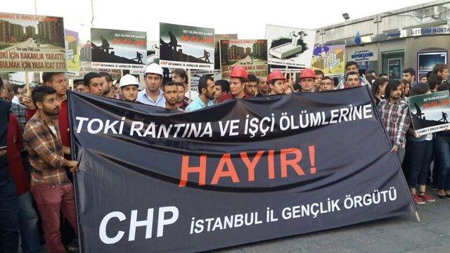 Özgürlük Meydanı'nda saat 18.00’de gerçekleştirilen eylemde yerini alan CHP Silivri Gençlik Kolları adına Başkan Berker ESEN “TOKİ rantına ve işçi ölümlerine karşı olduklarını, Rant uğruna şehirleri talan eden anlayışı nefretle kınadıklarını” söyledi. “TOKİ rant için nereye bulaştıysa orada felaket ve ölüm var” açıklamasında bulundu.