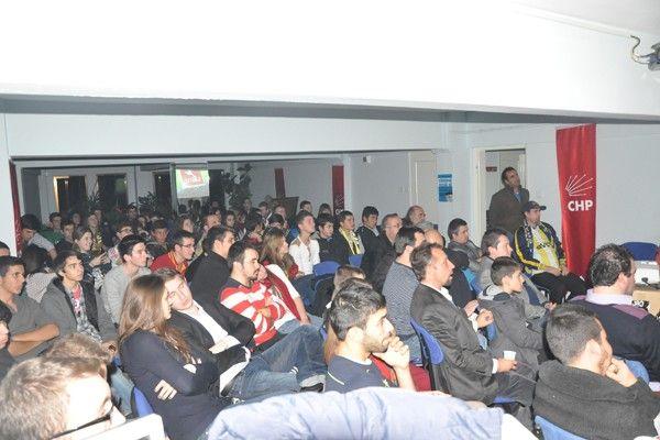 CHP'li gençler, Galatasaray-Fenerbahçe karşılaşmasının coşkusunu birlikte yaşadılar. İlçe Gençlik Kolları'nın organizasyonu kapsamında parti binasında toplanan her iki takımın taraftarları, büyüklerine örnek bir davranış sergileyerek, sporun barış ve kardeşlik duygusundan öteye bir şey olmadığını gösterdiler.