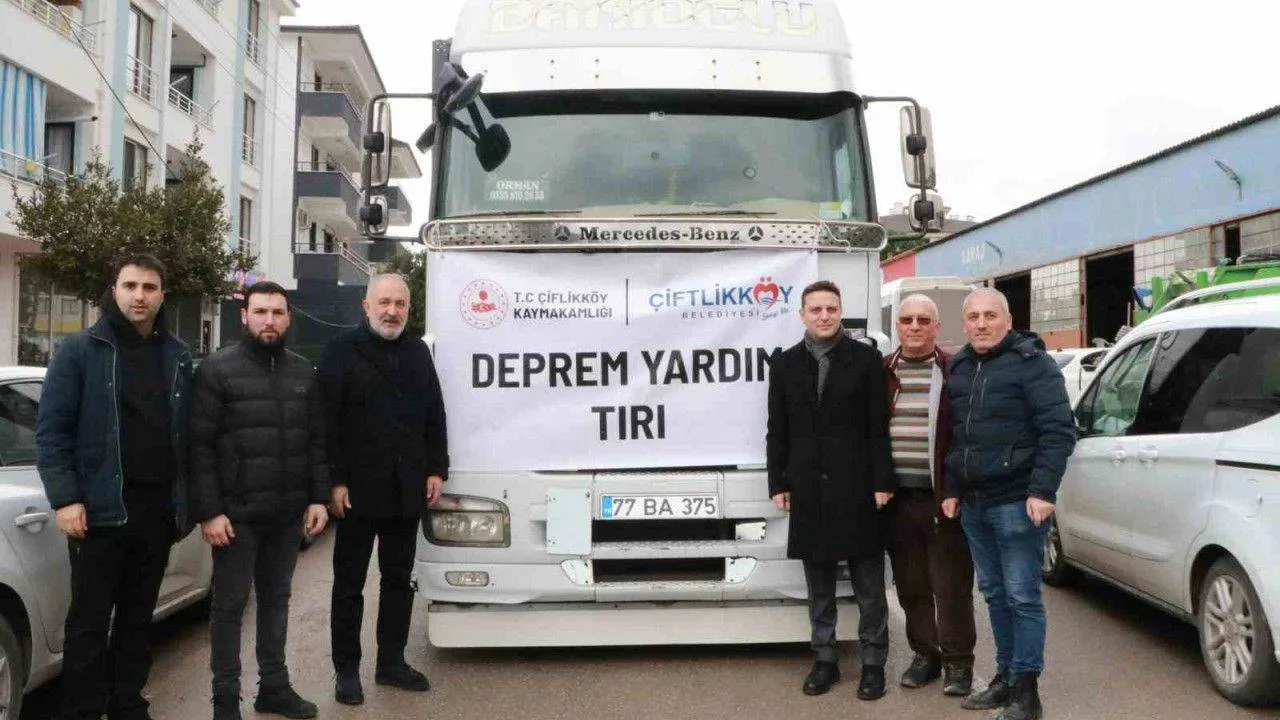 Çiftlikköy'den 2. yardım tırı da Hatay'daki depremzedelere ulaştırılmak üzere yola koyuldu. İlçe halkının büyük destek verdiği Çiftlikköy Kaymakamlığı ve Çiftlikköy Belediyesi uhdesindeki yardım kampanyasında bir günlük yoğun çalışmanın ardından doldurulan bir tır ve bir kamyonet dolusu yardım malzemesi, Çiftlikköy Kaymakamı Ömer Bilgin ve Çiftlikköy Belediye Başkanı Ali Murat Silpagar tarafından yolcu edildi. Başkan Silpagar, kısa zamanda Çiftlikköy Yardım Merkezi'ne ulaştırılan yardım malzemelerinin ekipler tarafından listelenip kolilenerek araçlara yüklendiğini dile getirerek, gönderilen malzemeler hakkında bilgi verdi.