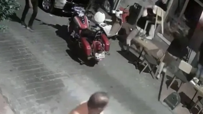 Tarafların birbirine girdiği kavgada sandalye fırlatılan esnaf da eline ayaklı küllük alarak kendini savunmaya çalıştı. Kavgaya karışan taraflar birbirinden ayrıldığı esnada ise sokaktan geçen motosikletli bir şahıs havaya ateş açınca ortalık bir kez daha karıştı. Neye uğradığını şaşıran sokaktakiler etrafa kaçıştı. Yaşananlar ise güvenlik kameralarına anbean yansıdı.