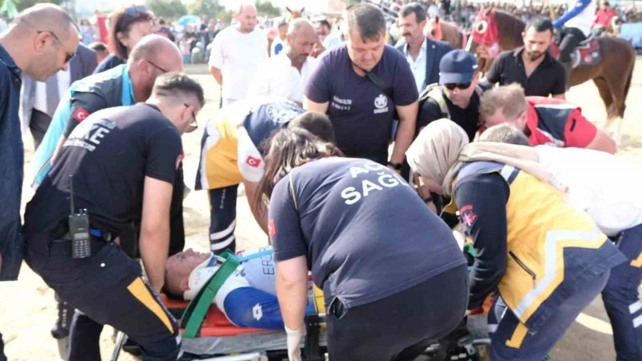 Cirit gösterisinde binici attan düşerek yaralandı
