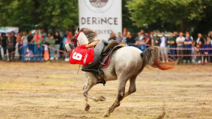 Kocaeli'nin Derince ilçesinde gerçekleştirilen cirit şöleni nefesleri kesti. Yoğun katılımın olduğu şölende sporcular kıyasıya yarıştı.