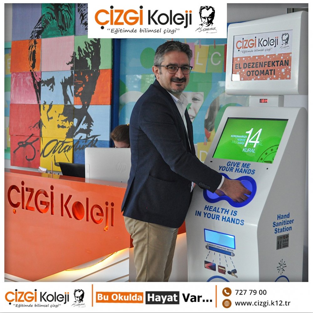 Çizgi Koleji, öğrencilerinin sağlığını düşünerek tüm kampüslerine dezenfektan otomatları kurdu.