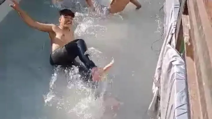 Bursa’nın merkez Osmangazi ilçesi Küçükbalıklı Mahallesi’nde çocuklar, hava sıcaklığının iyice artmasından bunalarak bir kamyonetin dorsesini havuza çevirdi. Dorseye muşamba seren çocuklar daha sonra dorseyi su ile doldurdu. Doldurdukları suda yüzen çocukların sevinci amatör kamera ile kaydedildi.