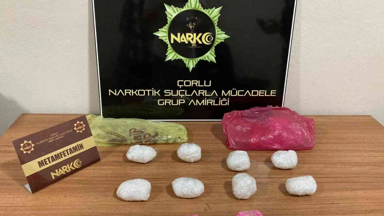 Tekirdağ'ın Çorlu ilçesinde polisin uyuşturucu madde satıcılarına yönelik olarak gerçekleştirdiği operasyonda 1 kilogram metamfetamin maddesi ele geçirildi.