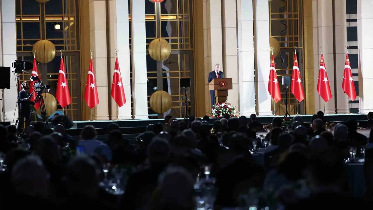 Bu sene cumhuriyetin 100. yılına ulaşma gururunu yaşandığını belirten Erdoğan, ”Cumhuriyetimizin yeni asrına yelken açacağız. Elde ettiğimiz hiçbir kazanım altın tepside sunulmadı. Son 21 yılda hayata geçirdiğimiz reformlarla ülkemizi ayağına vurulan prangalardan kurtardık. Her alanda Türkiye’nin çehresini değiştirdik. Tarihimizden güç alarak yarınlarımızı çizmeye gayret ediyoruz. Dış politikamızın ufkunu tüm dünyayı kapsayacak şekilde genişlettik. Ülkemizin prestij projesi olan Türkevi’ni 2 yıl önce hizmete açtık. Burada saymaya kalksak sayısız başarıyı diplomasi alanında ülkemize kazandırdık” diye konuştu. Yeni dönemde yepyeni bir heyecanla yollarına devam ettiklerini dile getiren Cumhurbaşkanı Erdoğan, ”İlkemiz gayet nettir. Türkiye hadiseleri tribünden seyredemez. Sahada ve masada aktif olmak bizim için tercih değil, mecburiyettir. Gerilim peşinde koşmadığımız gibi sabırlı ve onurlu şekilde baskılara boyun eğmiyoruz. Diplomasinin tüm imkânlarını, sert ve yumuşak güç unsularının tamamını kullanarak Türkiye’nin menfaatlerini korumanın derdindeyiz. Devletimizin öncelikleri çerçevesinde, büyükelçilik ve konsüler ağımızı büyütme gayretlerimiz devam ediyor” değerlendirmesinde bulundu.