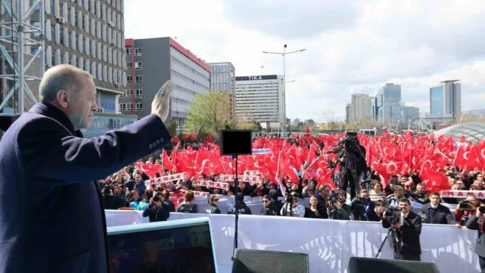 Metro hatlarıyla, millet bahçeleriyle, kentsel dönüşüm projeleriyle, yollarıyla, içme suyu ve arıtma tesisleriyle şehirleri Türkiye Yüzyılı’na hazırlamak için gece gündüz çalıştıklarını ifade eden Erdoğan, ”Bugün Ankara’da açtığımız günlük 600 bin yolcu kapasiteli metro hattımızı da işte bu yaklaşımla inşa ettik, sizlerin hizmetine sunduk. Başkentimizde sadece metro hatlarına yenilerini eklemekle de kalmadık, mevcut 108 metro aracına ilave 324 yeni nesil metro aracı daha aldık. Böylece metro hatlarında çalışan araç sayısını 4 katına yükselterek kapasiteyi ve konforu da artırdık. Önümüzdeki dönemde yeni projelerle, yatırımlarla, eserlerle, hizmetlerle Ankara’yı Türkiye Yüzyılı’na hazırlamayı sürdüreceğiz. Şimdi buradan soruyorum, 14 Mayıs’ta geleceğimize sahip çıkıyor muyuz? 14 Mayıs’ta kazanımlarımızı daha da ileri taşıyor muyuz? 14 Mayıs’ta Türkiye Yüzyılı’nın inşası için ’ya Allah Bismillah’ diyor muyuz? 14 Mayıs’ta Türkiye Yüzyılı için ’Doğru adımlarla yola devam’ diyor muyuz” ifadelerini kullandı.