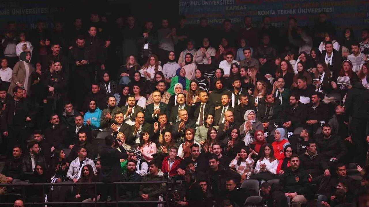 Son dönemde özellikle sosyal medya gençlere yönelik paylaşımlara dikkat çeken Erdoğan, “Birileri ısrarla kuşakları harflerle etiketleyerek bizimle gençlerimizin arasını açmaya çalışıyor. Kötü kurgulanmış bir takım görüntüler, sokak röportajları, medya haberleri üzerinden kendi akıllarınca operasyon çekiyorlar. İşte gençler burada. Sadece son iki yılda gençlerimizle 34 ayrı programda bir araya geldik. Bu programlarda sohbet ettik, şiir okuduk, şarkı söyledik. Gördük ki gençlerimizle aynı yöne bakıyor, aynı duyguları paylaşıyor, aynı hayallerin peşinden gidiyor. Birileri sosyal medyada kendileri gaza getirirken biz gençlerimizle yüz yüze, göz göze, diz dize, el ele, gönül gönüle Türkiye Yüzyılı’na yürüyoruz. Bu manzarayı görünce önce çamur atmaya kalktılar tutmadı. Sonra taklit etmeye çalıştılar o da olmadı. Şimdi ne yapacaklarını bilemez vaziyette bir o yana, bir bu yana savrulup duruyorlar. Bunların anlamadıkları şu. Bu iş öyle planla projeyle, senaryoyla, medya ajanslarından devşirilen oyuncularla olmaz. Bu iş yürek işidir, kalp işidir, aşk işidir, sevgi işidir” diye konuştu.